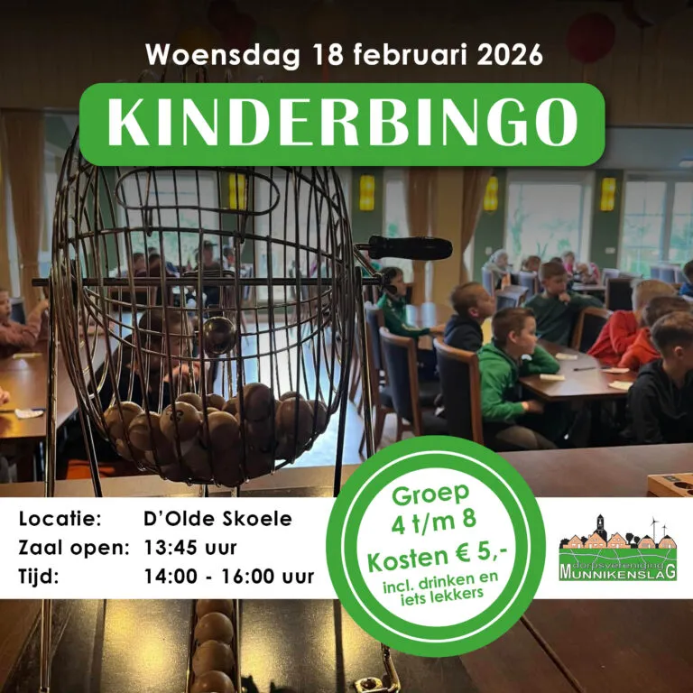 Woensdag 18 februari is het BINGO-tijd voor de kinderen van groep 4 t/m 8 uit Rouveen of kinderen die in Rouveen naar school gaan.